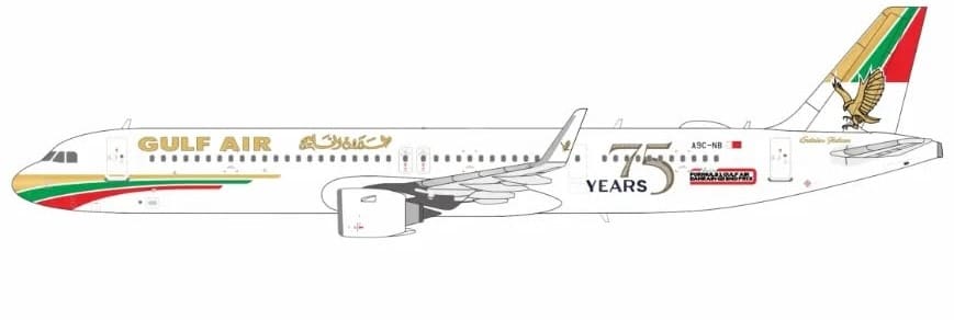 NG Models 1:400 Gulf Air Airbus A321neo “1976 Retro – 75th Anniversary” A9C-NB (NG13145).